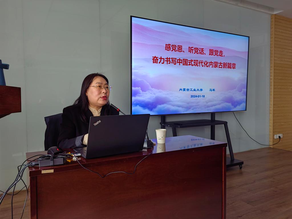 马军教授聚焦“六句话”的事实和道理,以及习近平总书记对内蒙古的关怀厚爱和期望重托,指出了内蒙古建设发展和取得丰硕成果的最根本原因就在于以习近平同志为核心的党中央坚强领导,就在于习近平新时代中国特色社会主义思想的科学指引。同时,她结合公司工作实际提出了奋力书写中国式现代化内蒙古新篇章的路径和方法。